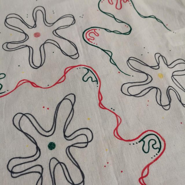 Dessin réalisé à la main, au feutre textile, résiste à l'eau
